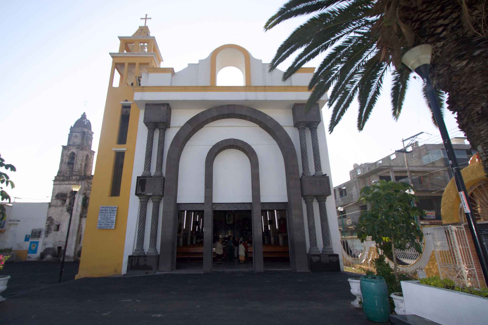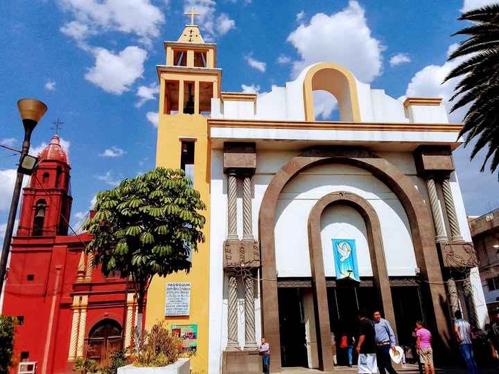 The Templo de Santa María Aztahuacán is the parish church of the town of the same name. It's just north of the town square with the famous clock. Today an older church is complemented by a much newer structure, but the two share the same atrium which also acts as a quasi-public space. It's a very important town, one of 15 original settlements in Iztapalapa, Mexico City.