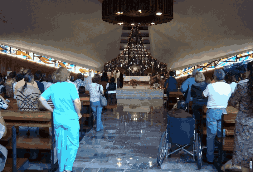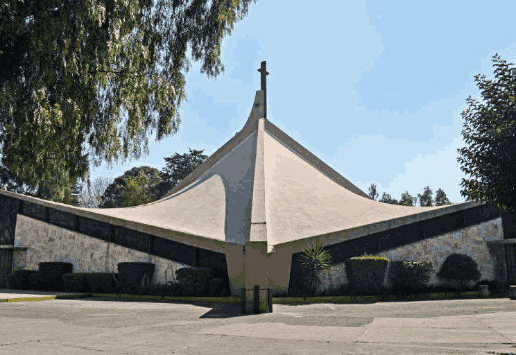 The church is often noted for the centralized altar. This was designed in response to the Second Vatican Council (1962-65) to direct the attention of those assembled to the sacrificial act.The roof is made of three hyperbolic paraboloid mantles covering the entire interior. These are supported by two large frontal gussets, a structural solution mastered by De La Mora Palomar and Candela.