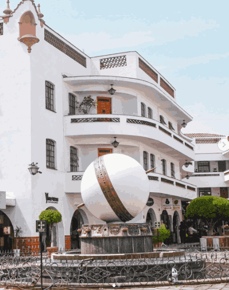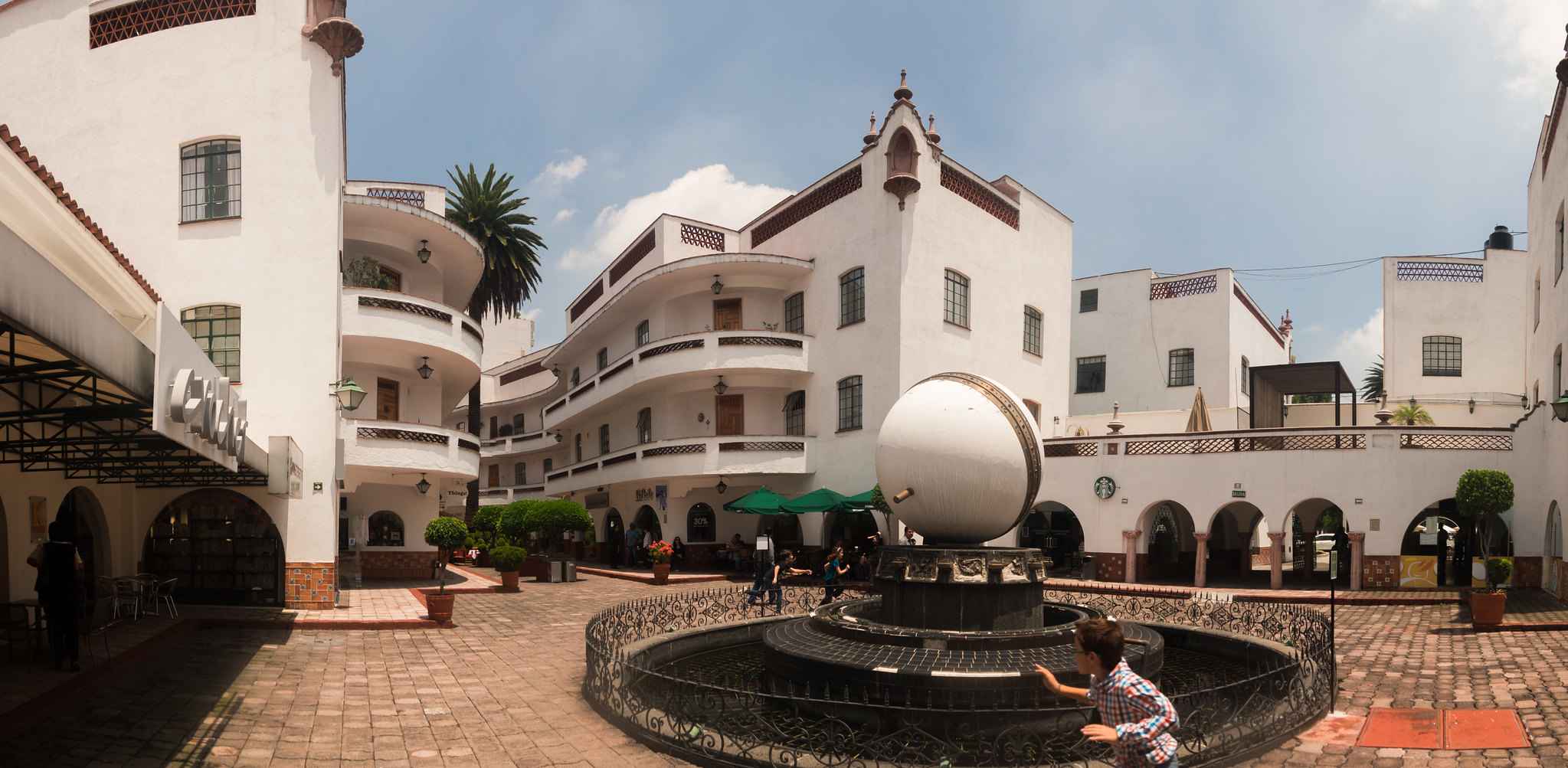 For a commercial and residential property, it somehow still has individual lease-holders, i.e.; independent restaurants. Much of the street-level on three sides is still dedicated to one-owner eateries. And they're still open beneath the Pasaje Polanco's four residential apartment buildings.The trademark sundial, shown above, is original too. It was designed by Serrano himself.