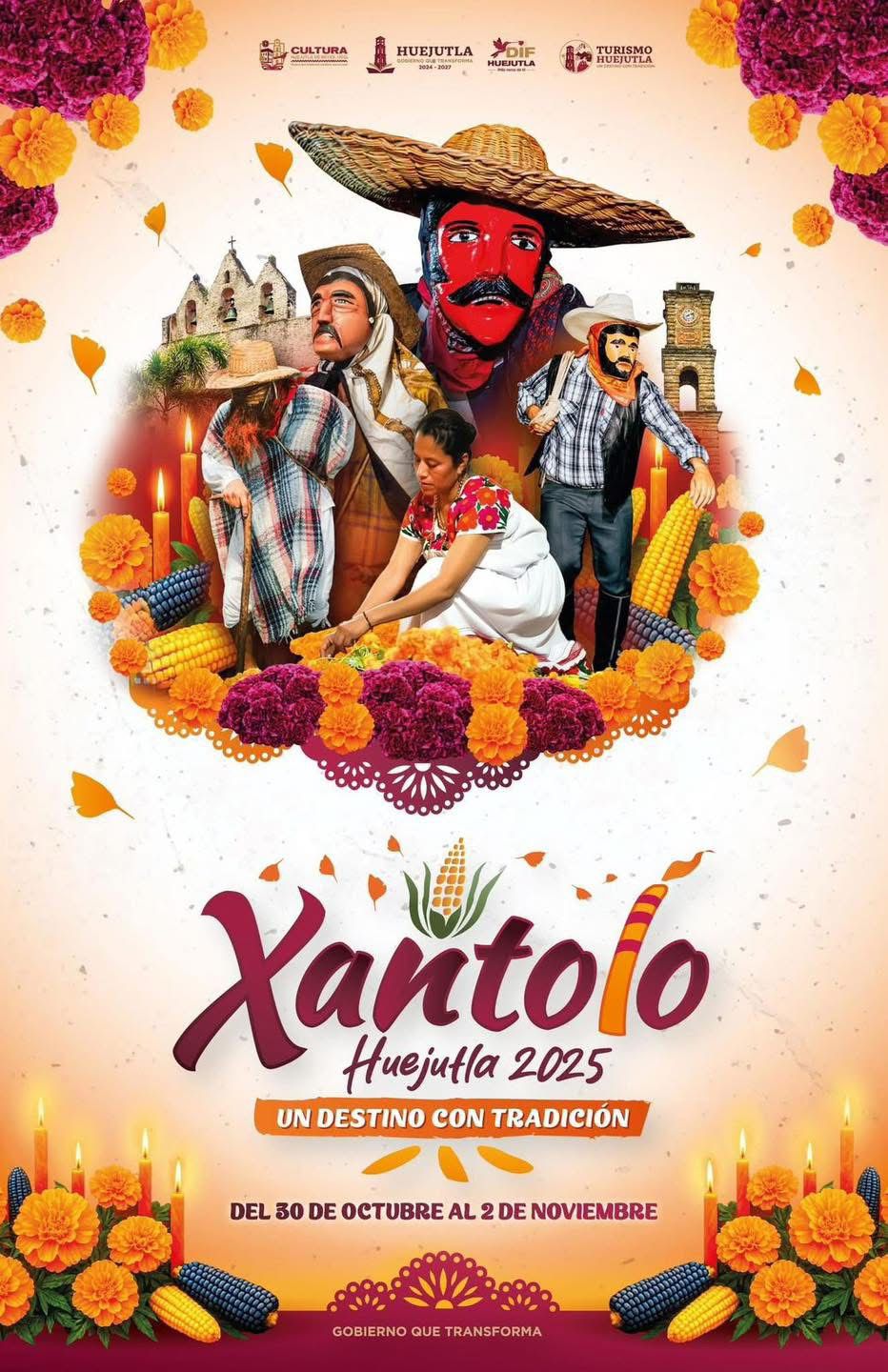 El nombre “Xantolo”, proveniente del náhuatl y del latín “sanctórum” —Fiesta de Todos los Santos—, encierra el espíritu de esta festividad: honrar la memoria de los difuntos con alegría, color y música, porque en Huejutla la muerte no es final, sino un reencuentro.