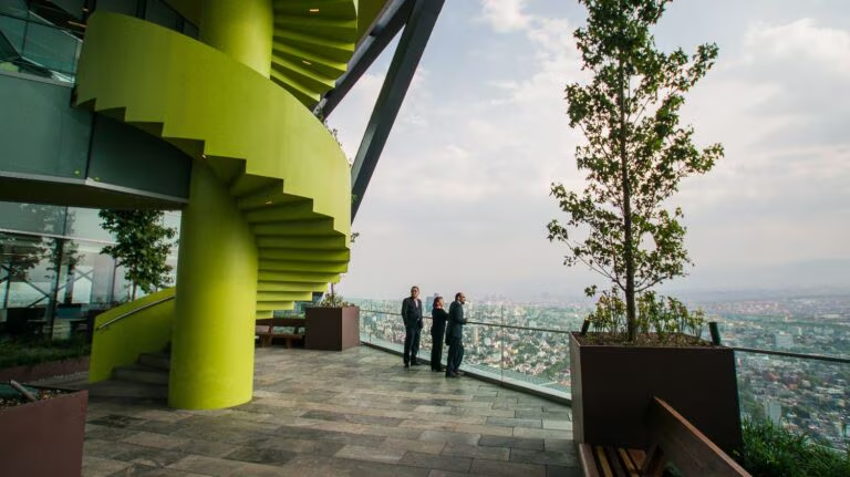 En Paseo de la Reforma en el extremo occidental de la Colonia Juárez, el edificio está directamente frente a la Torre Mayor. Mide 235 metros de altura hasta el helipuerto, pero 15 metros adicionales de antenas en realidad no agregan mucho a la altura oficial. De hecho, son decorativas. El edificio también está casi conectado a nivel del suelo con Metro Chapultepec. La torre presume de unos 60 pisos de 4.30 metros cada uno, y siete niveles de estacionamiento que miden 3.7 metros. La superficie total del edificio es de 185 000 metros cuadrados, lo cual es impresionante si se tiene en cuenta que todo el sitio tiene solo 11 000 metros cuadrados. El contrato para construir la torre fue otorgado al arquitecto mexicano Ricardo Legorreta y al arquitecto británico Richard Rogers, a través de un concurso en 2009. El costo de construcción fue de unos 13 000 USD por metro cuadrado.