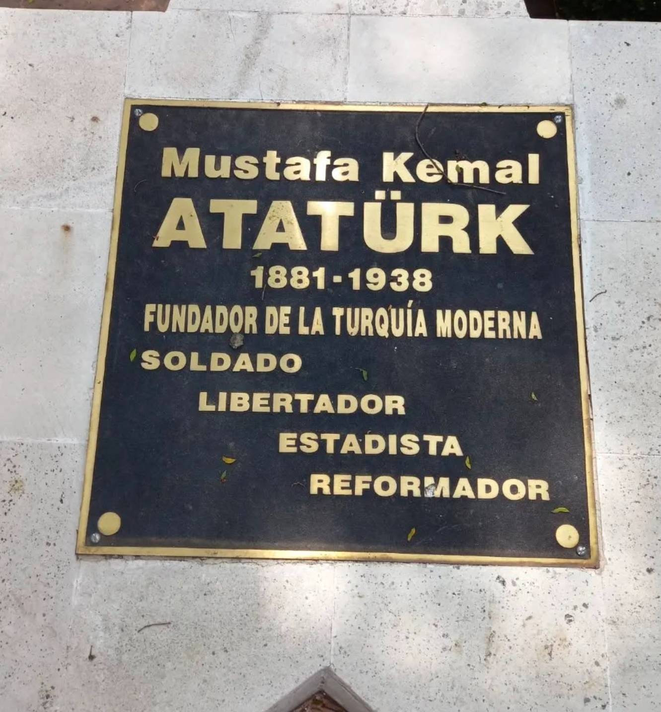 La historia recuerda a Atatürk por las amplias reformas que supervisó tras la Primera Guerra Mundial y la disolución del Imperio Otomano, de 600 años de antigüedad. A Atatürk se le atribuye casi en solitario la creación del Estado laico de Turquía y el inicio del proceso de industrialización del país.La estatua se alza en el pleno vecindario de las Lomas . Como tal, no es probable que se visite fuera de las conmemoraciones oficiales o las sesiones fotográficas.