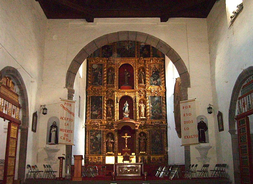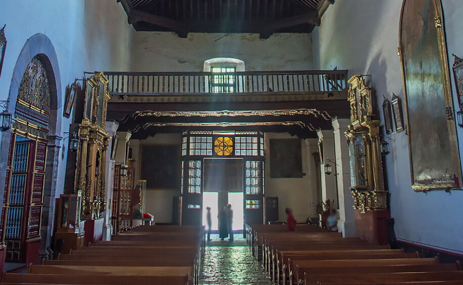 La iglesia tiene una sola nave con la entrada orientada hacia el oeste. El techo artesonado es especialmente famoso. Las cinco capillas laterales incluyen, al norte, la capilla de San Antonio, y al sur, las dedicadas a la Tercera Orden, el Santo Sepulcro, Nuestra Señora de Guadalupe y Nuestro Señor de la Misericordia. Por supuesto, hay una sexta capilla abierta al otro lado del primer atrio restante, frente a la capilla abierta situada sobre el segundo atrio, ahora casi completamente rellenado. La plaza de toros, al norte de la zona de la capilla abierta, ocupa ahora la mayor parte del terreno que antes se reservaba para predicar y convertir a la población local. Es una parte austera y resonante de la ciudad.