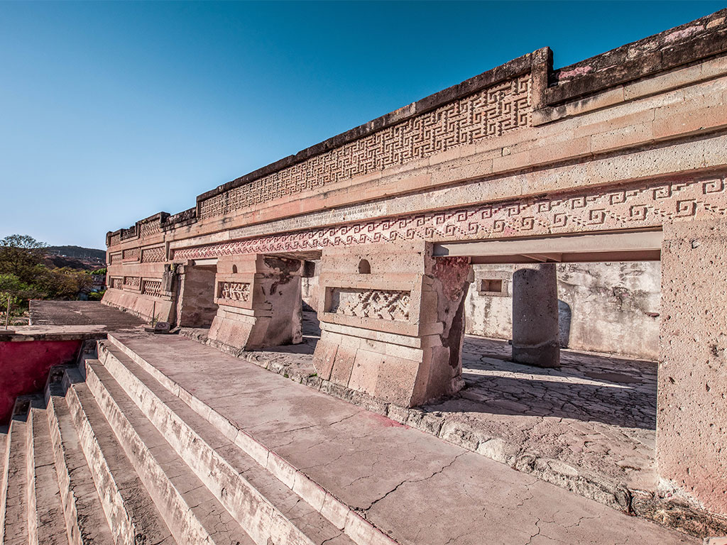 • Visita a la Zona Arqueológica de Mitla, ciudad zapoteca de los muertos, reconocida por sus grecas de piedra labrada.