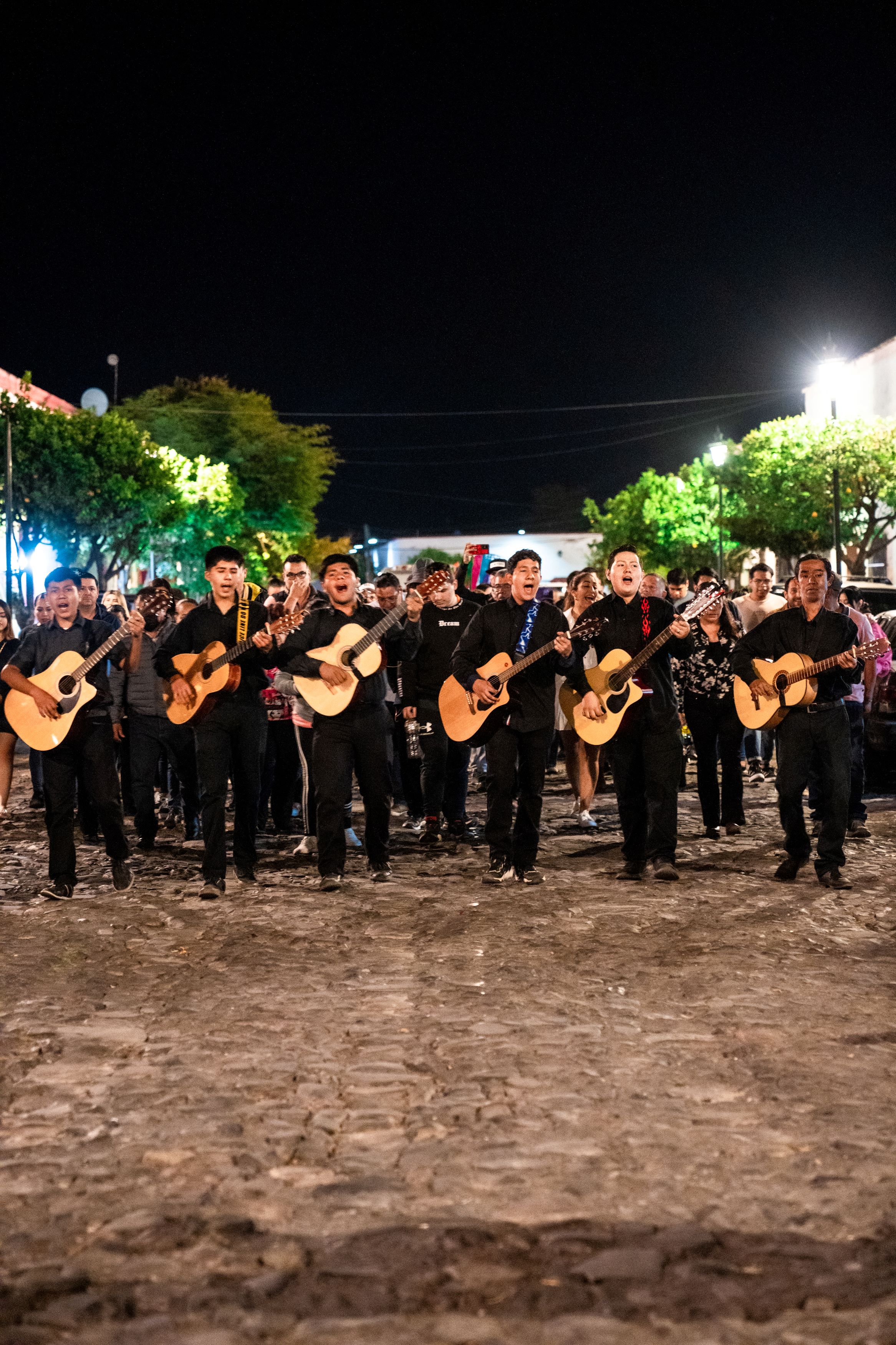 Callejoneada en el pueblo de Jala con música de banda.