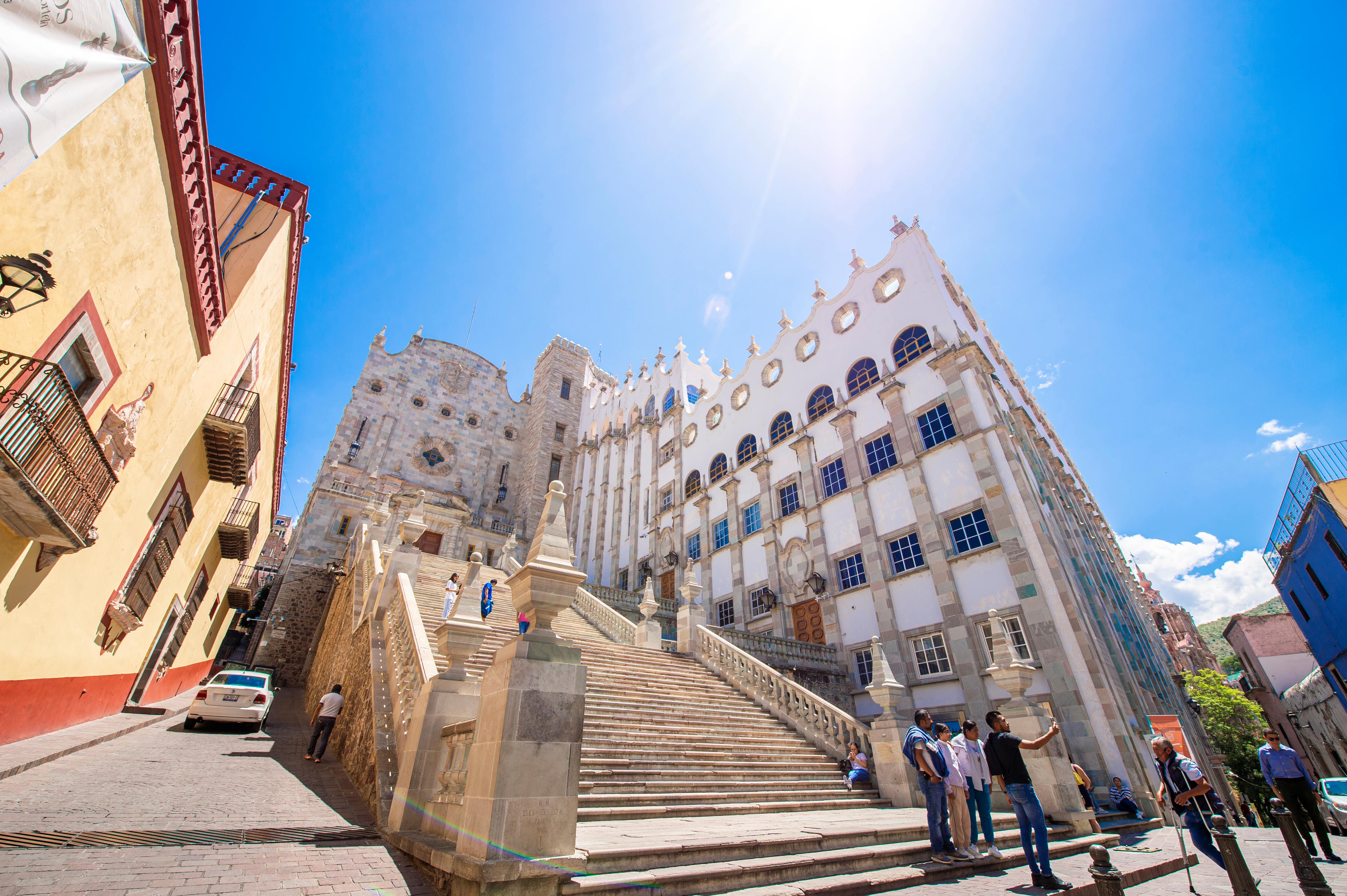 Visitaremos el Teatro Juárez, la Universidad de Guanajuato, la Basílica, la Plaza de la Paz, el Palacio de los Poderes, y el museo de Diego Rivera. Conoceremos el famoso Callejón del Beso, el Mercado Hidalgo y la Alhóndiga de Granaditas.