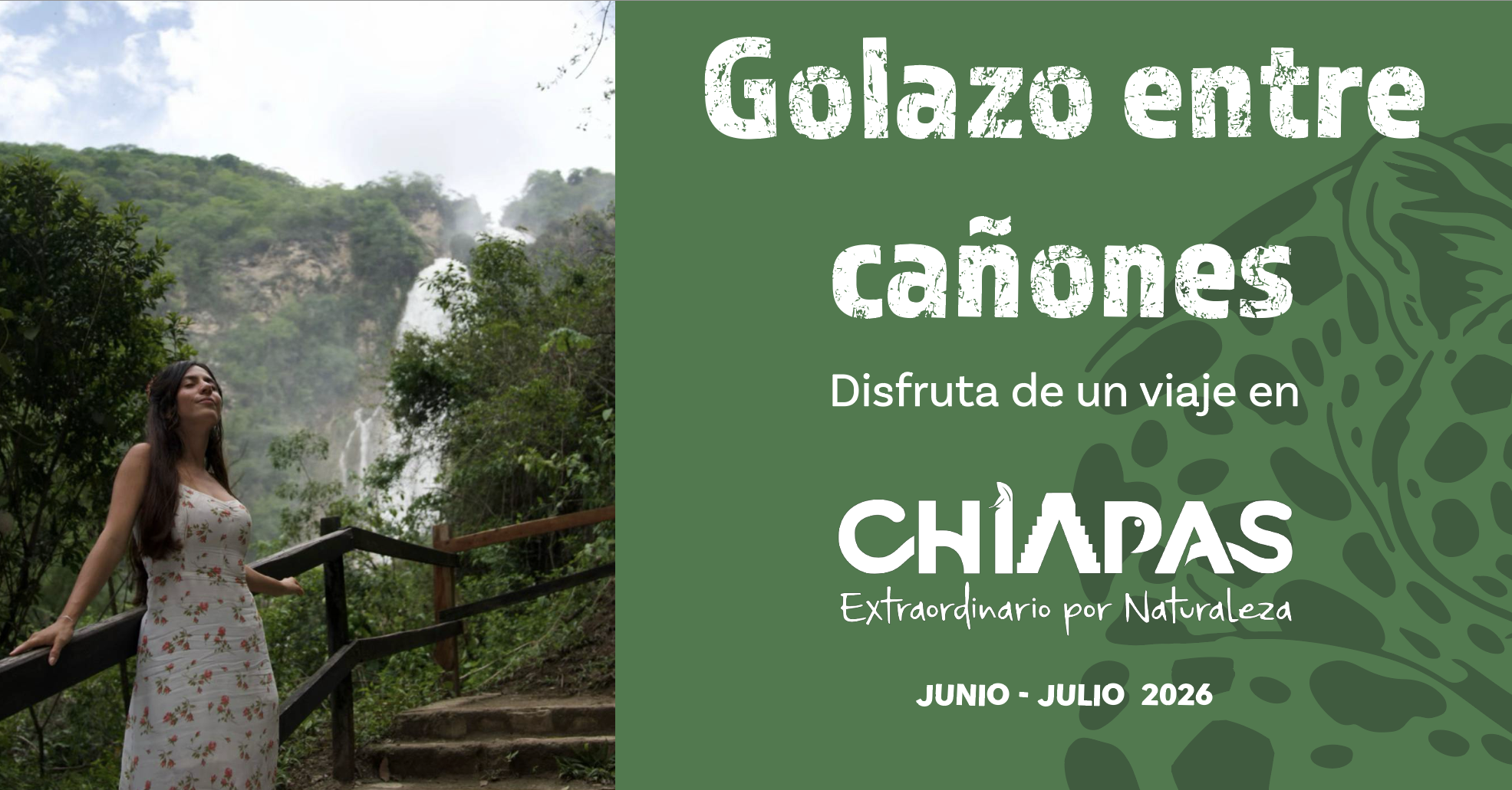 Entre partido y partido, regálate un gol de naturaleza. Vive Chiapas desde lo más alto del Cañón del Sumidero, recorre el colorido Pueblo Mágico de Chiapa de Corzo y disfruta el ambiente bohemio de San Cristóbal de Las Casas. Continúa entre el azul turquesa de El Chiflón y los más de 50 tonos de los Lagos de Montebello, para cerrar en Comitán, cuna de historia e identidad.