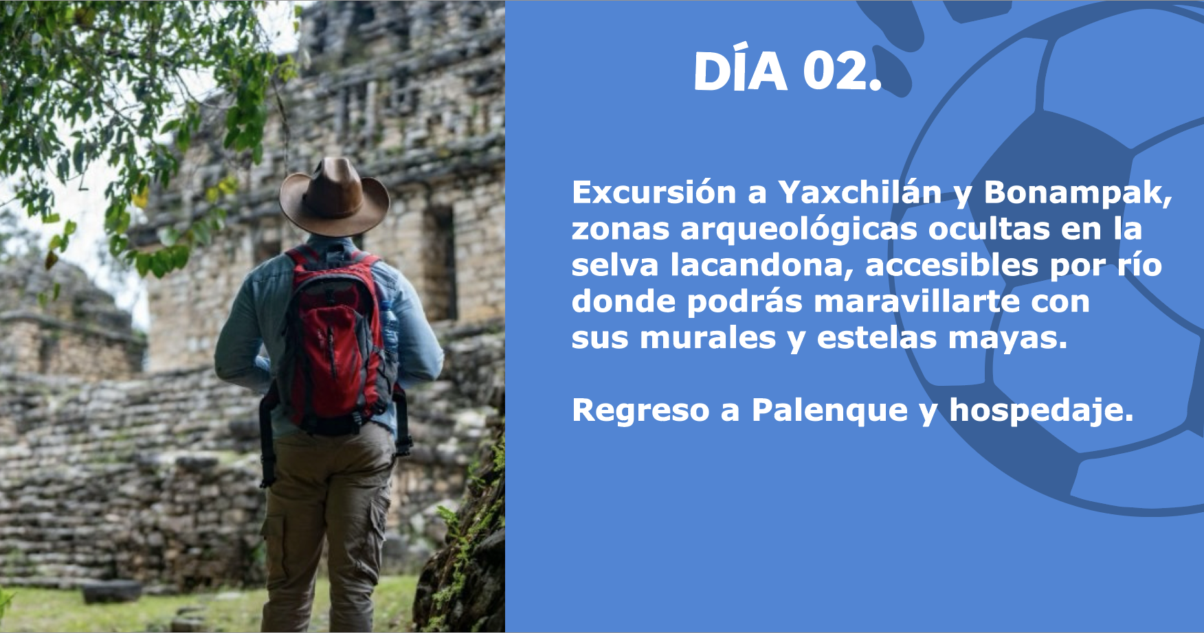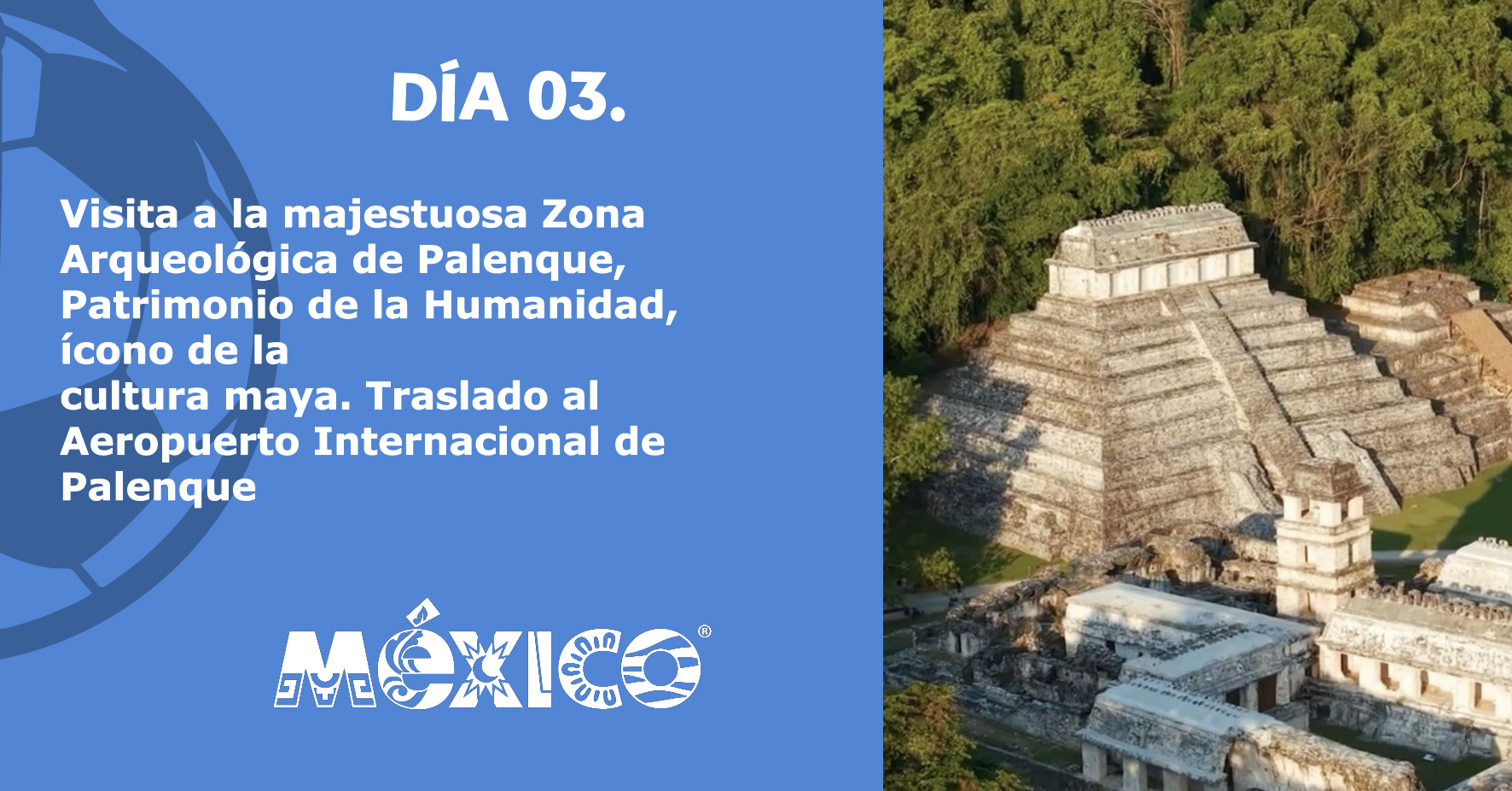 Cuando el fútbol hace historia, la selva también. Descubre las cascadas de Agua Azul, la imponente caída de Misol-Há y navega por río hacia Yaxchilán o atraviesa selvas hacia Bonampak, tesoros mayas ocultos en la selva lacandona. Finaliza en la majestuosa Zona Arqueológica de Palenque, Patrimonio de la Humanidad. 🌎 Un viaje donde la emoción del Mundial se vive entre naturaleza y cultura milenaria.