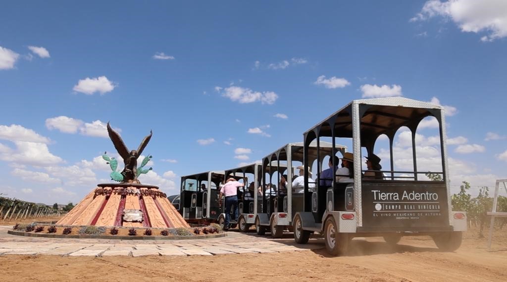 Recorrido guiado en tren por una parte de nuestras 50 hectáreas de hermosos viñedos, medallero, área de producción. Cava, sala de catas y área de tasting. Aprende sobre el proceso de elaboración de Vinos Tierra Adentro y conoce el único museo de la barrica en México.