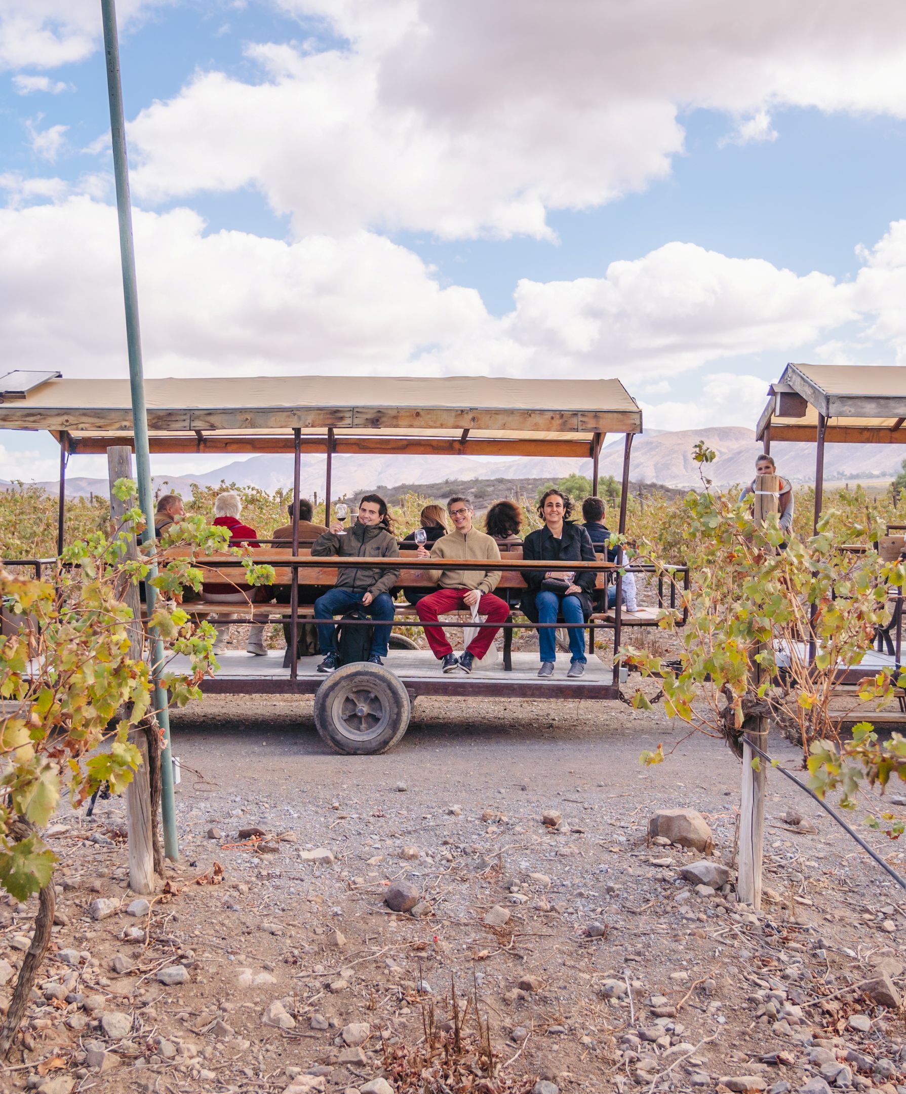 Traslado por su propia cuenta desde Hotel a Cava Santo Tomás, en donde se les recibirá en la cava y podrán degustar algunas de las etiquetas de Bodegas de Santo Tomás, para de ahí comenzar con alguna de nuestras diferentes experiencias, como recorrido en carreta entre viñedos y degustación de seis etiquetas mientras un experto , caminata entre vides donde conocerán más sobre las vides que dan origen a los vinos de Bodegas de Santo Tomás y una degustación de cuatro vinos, y taller mi vino, donde podrás crear tu propio vino y etiqueta, para posteriormente embotellarla y llevártelo a casa.